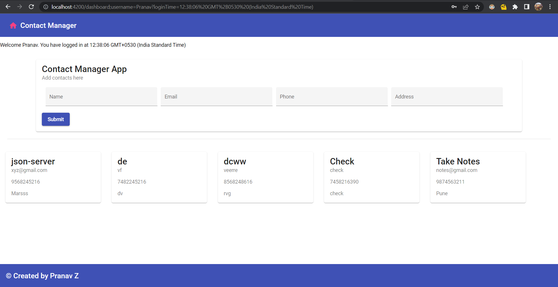 A online Contact Manager where user can add contact details and store it in form on json-data.